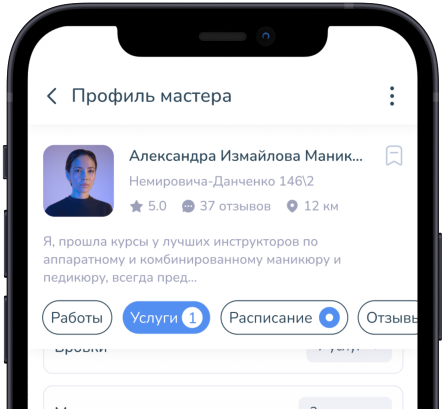 Оценивай работы мастеров и оставляй свои отзывы. Это поможет тебе и другим выбирать лучшего мастера и получить качественные услуги.